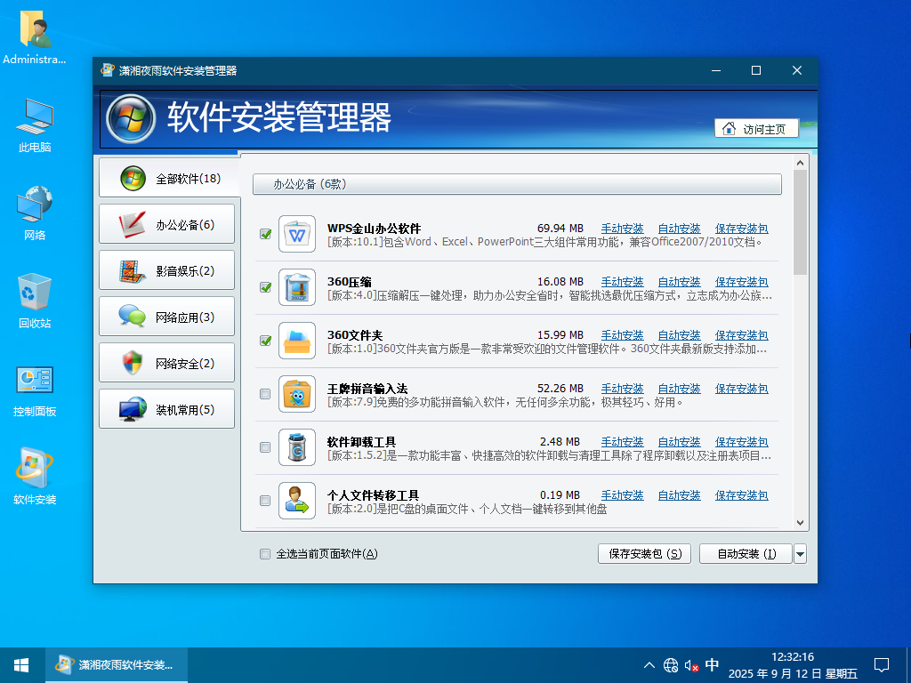 13.本版本已不再自动部署JH,进系统后可以点击桌面软件安装管理器,下翻自己弄一下就好,还想要啥程序可以提建议。