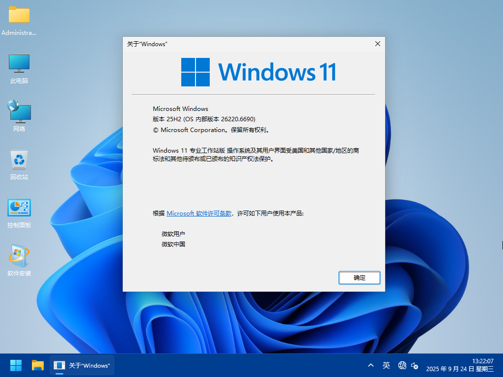 3.OS版本号为26220.6690。精简系统只是为部分用户安装,个别要求高的去MSDN下。