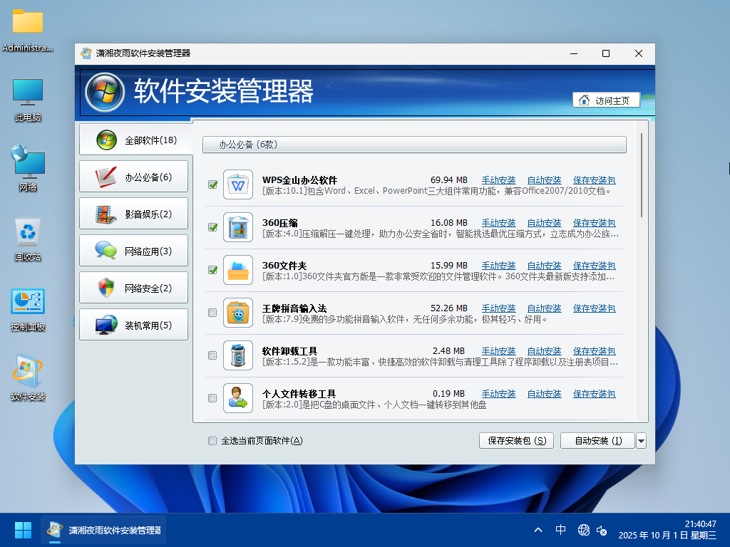 13.本版本已不再自动部署JH,进系统后可以点击桌面软件安装管理器,下翻自己弄一下就好,还想要啥程序可以提建议。