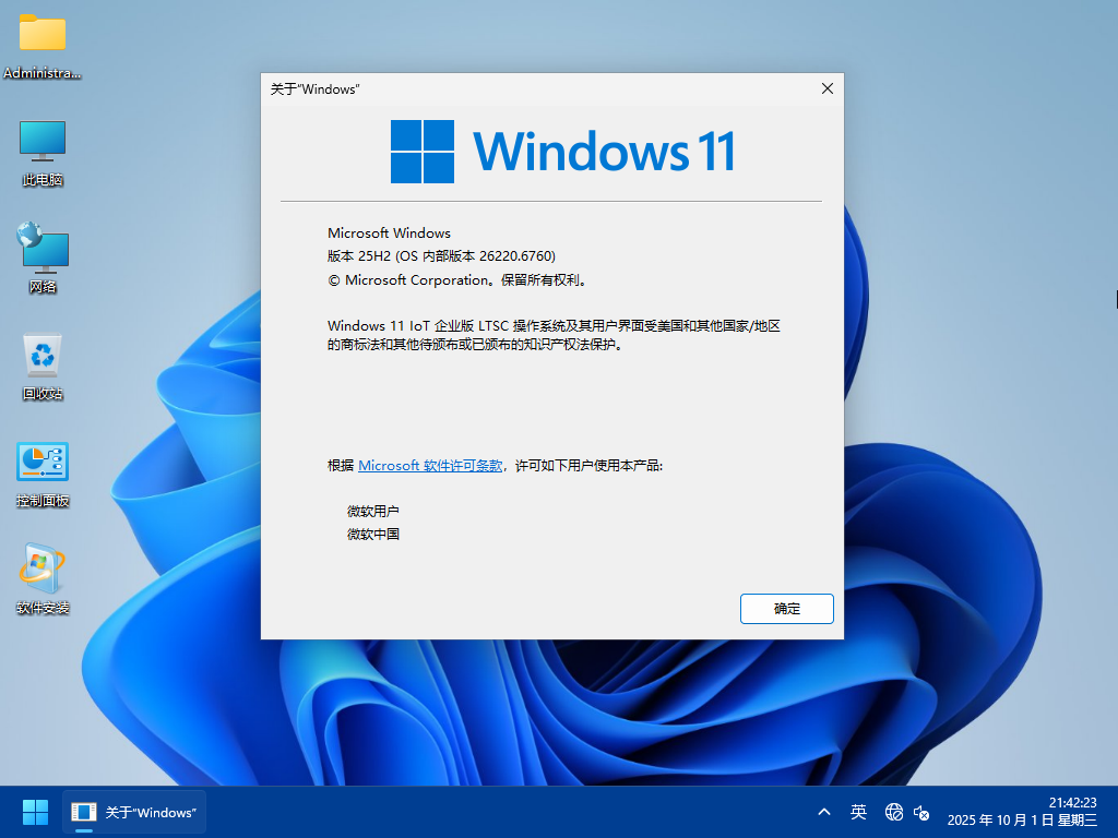 1.本次更新母盘来自WIN11_IoT_Ent_LTSC2024_25H2.26220.6760 .进桌面后稍等片刻,等待后续部分优化完成。